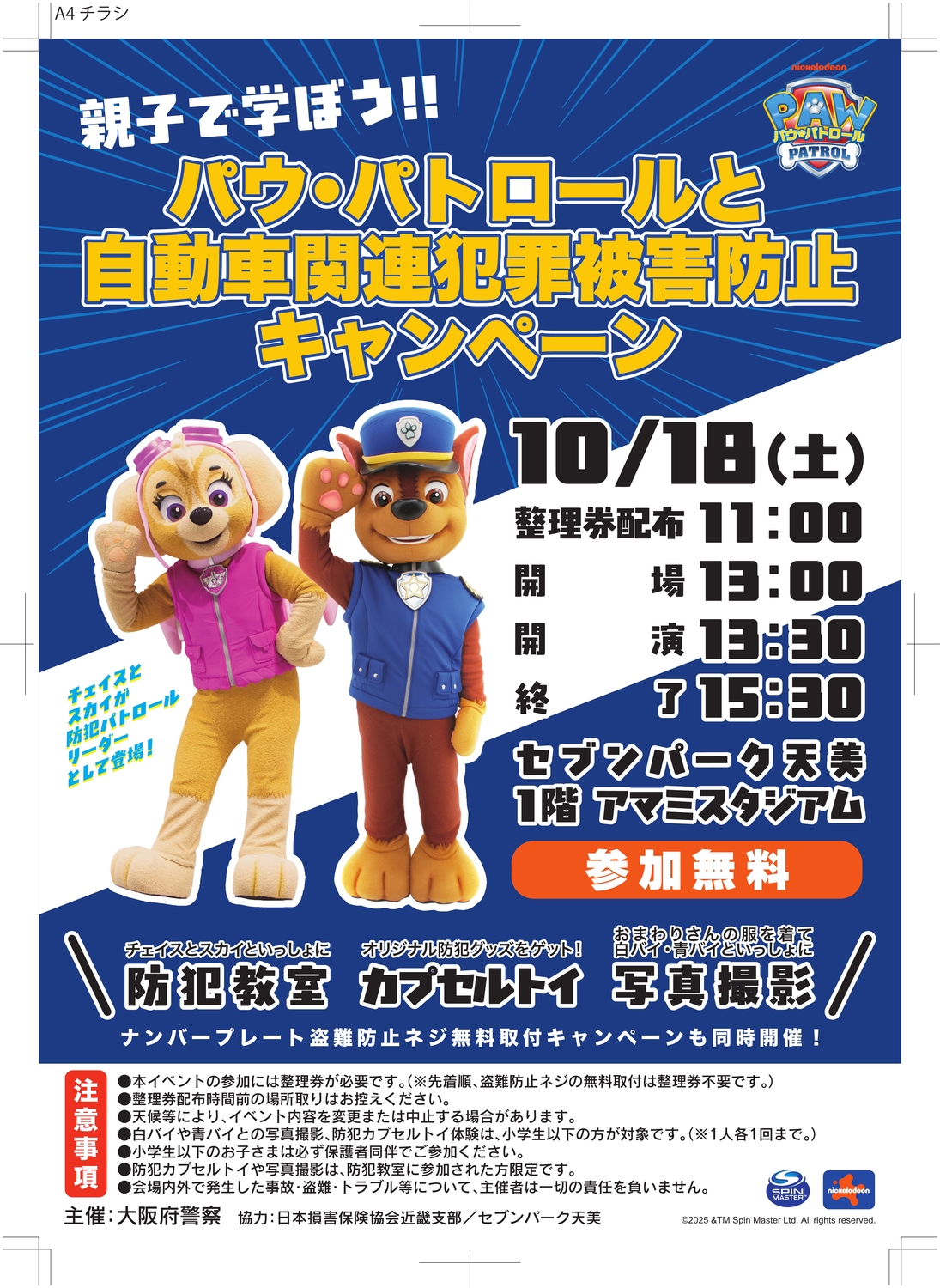 親子で学ぼう!!パウ・パトロールと自動車関連犯罪被害防止キャンペーン