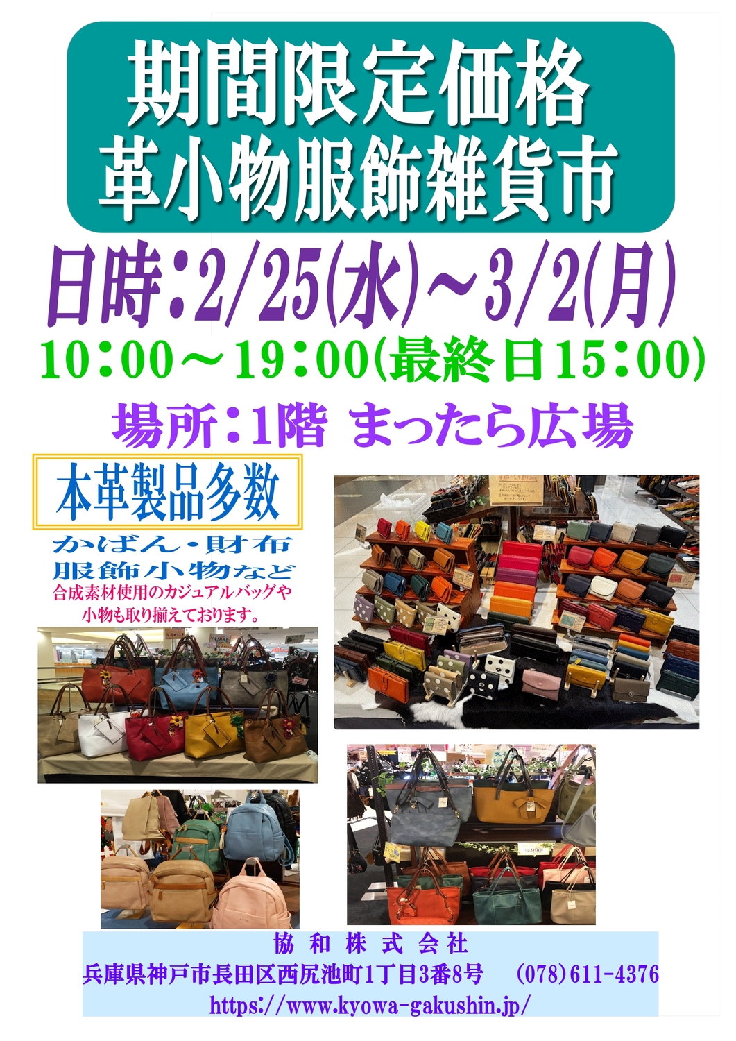 革職人手作りによる革お財布、革小物、鞄、靴、各種素材バッグ等の服飾雑貨を期間限定の特別価格にてご提供させて頂きます。