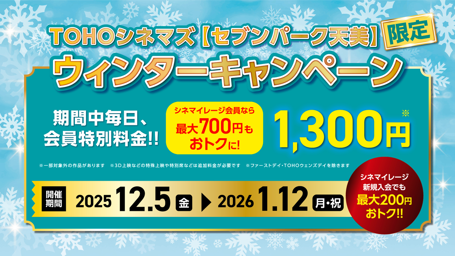 期間中、毎日シネマイレージ会員(一般・大学生)は1,300円