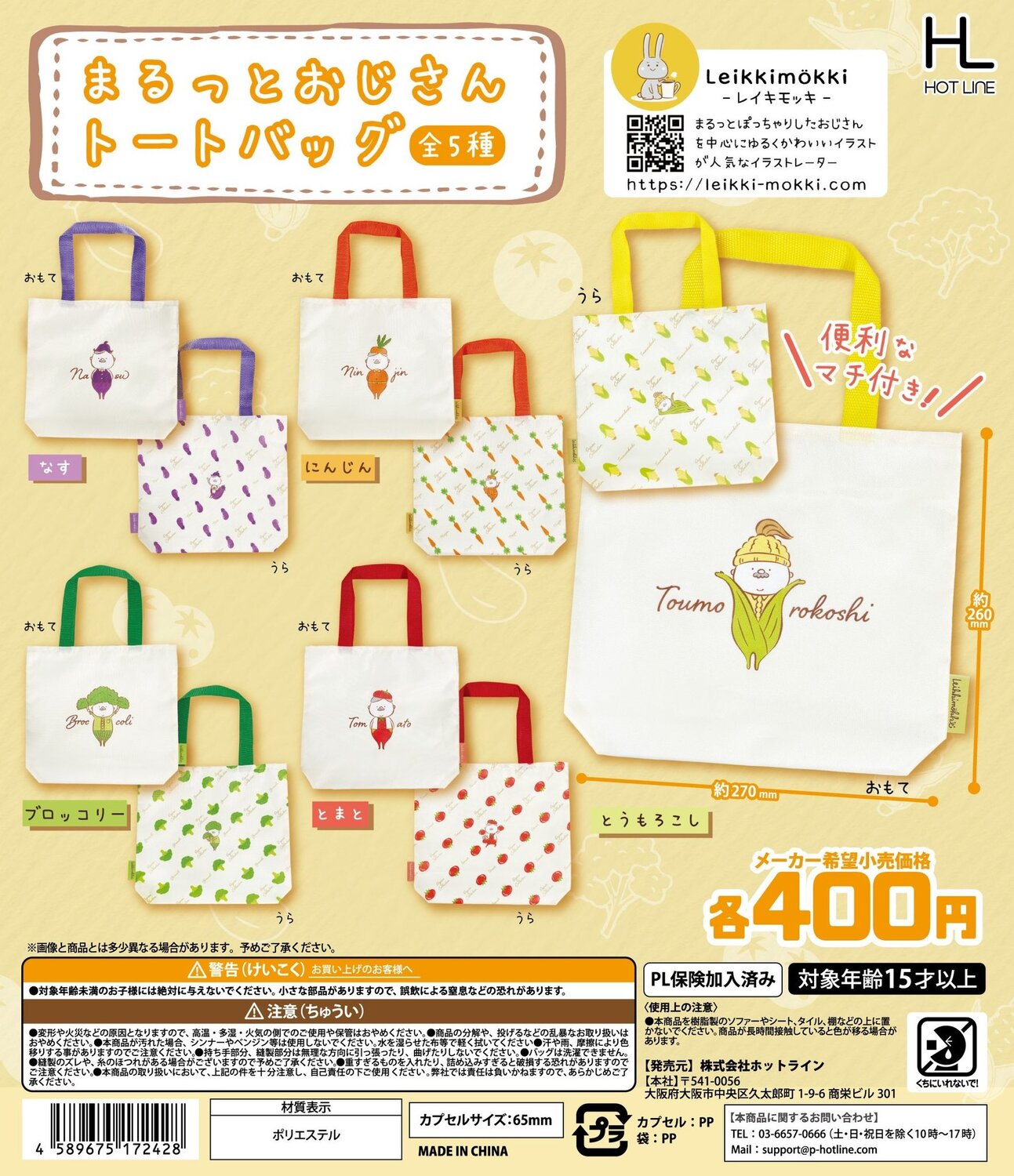 レイキモッキさんのお野菜シリーズがトートバッグになって登場!
