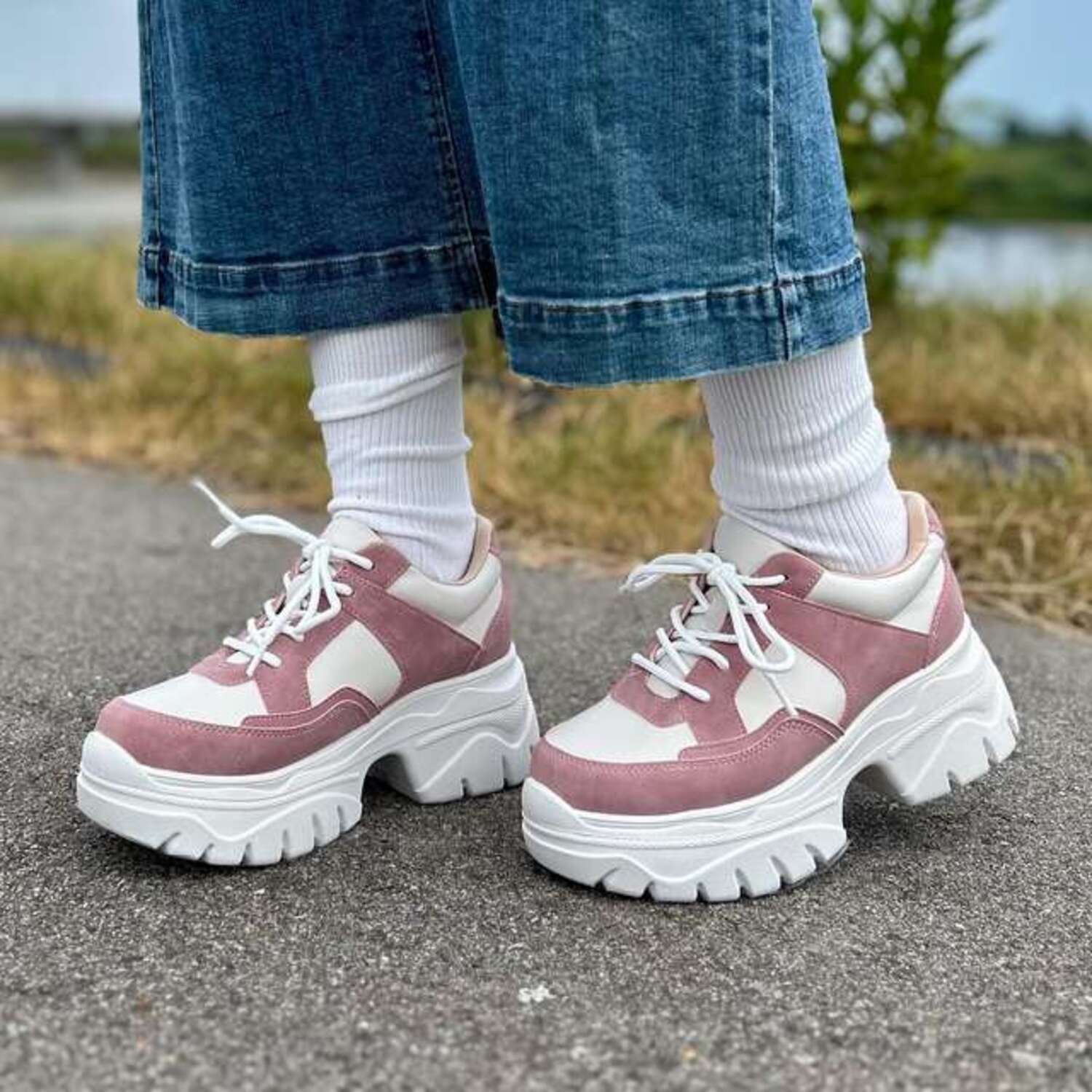 厚底のソールは約6cmと高く、美脚・脚長効果も期待できます。インソールには弾力のある低反発クッションを採用し足裏の負担を労わります。