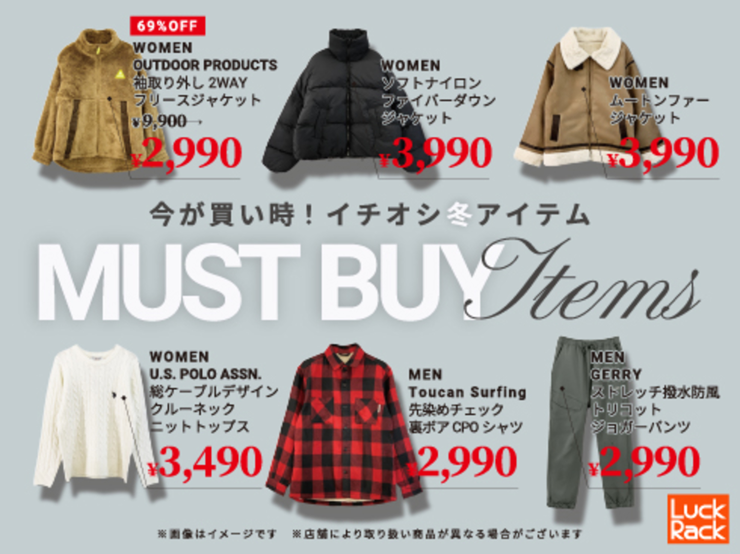 今が買い時!Luck Rackイチオシの冬アイテムを店頭に揃えました!