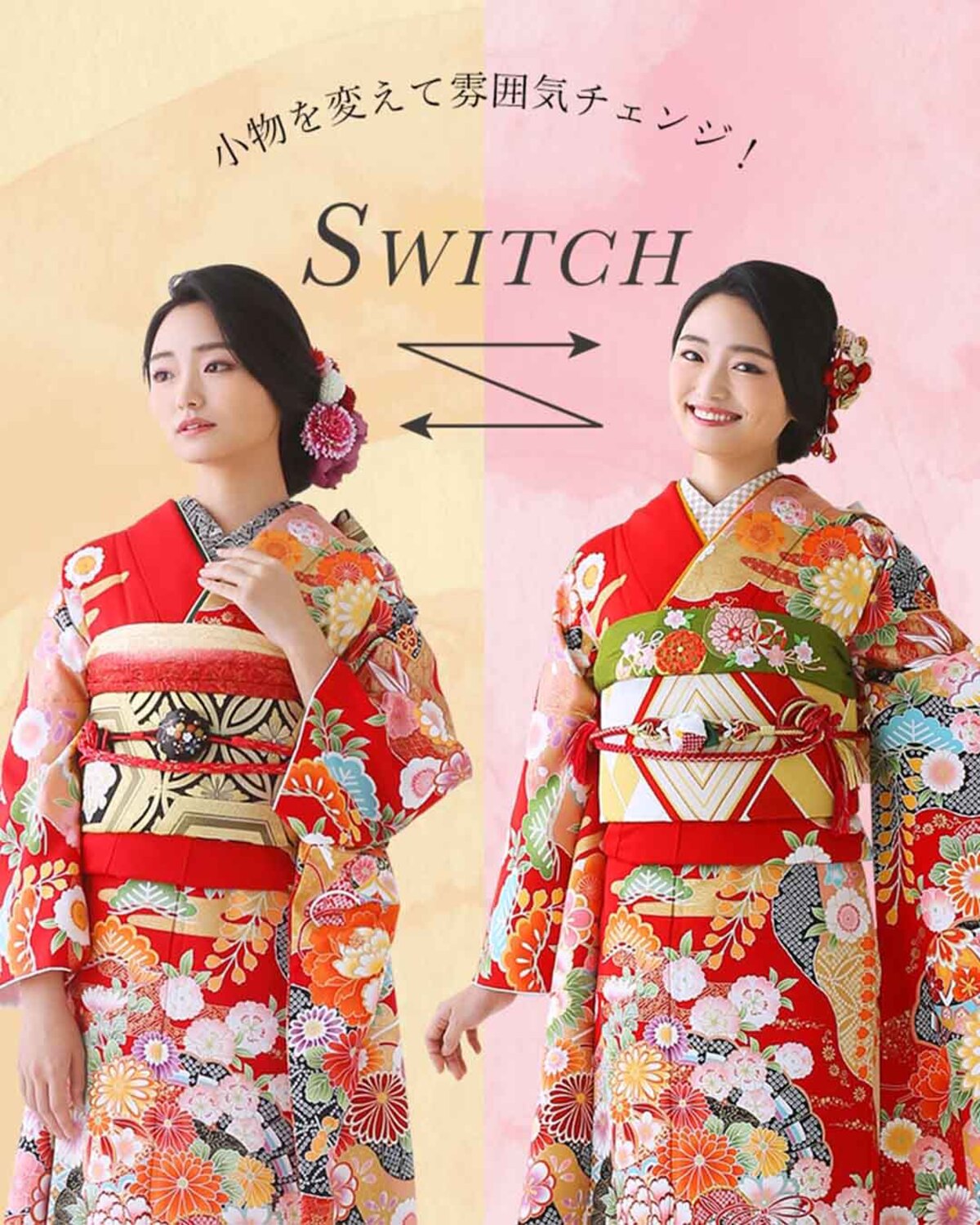 ひとつの振袖で楽しめるスイッチコーデ