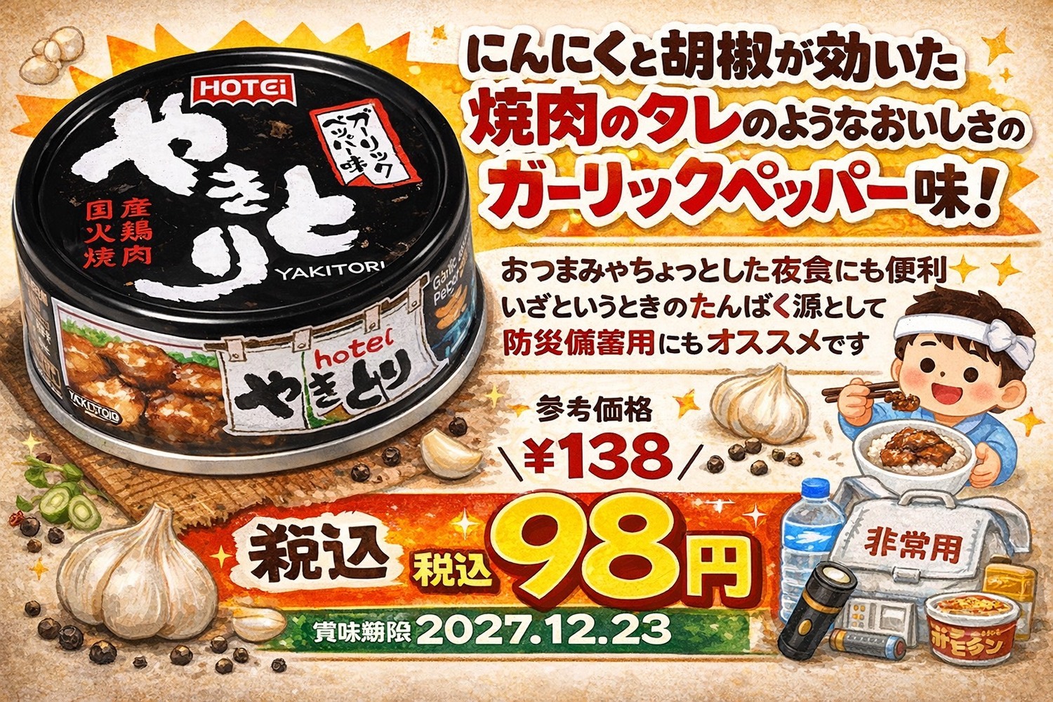 備蓄にもオススメ!期限まだまだのやきとり缶🐓