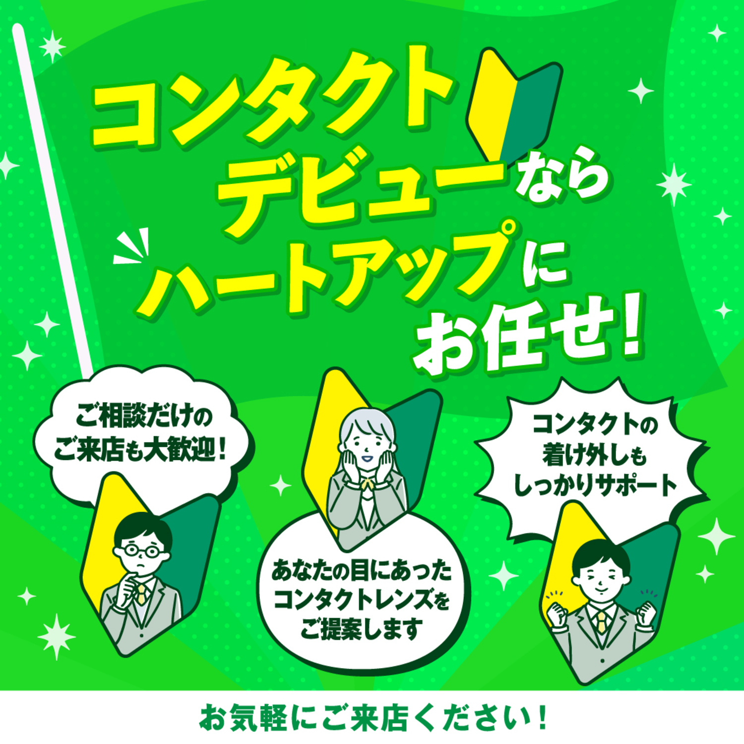 ハートアップでは、そんな不安をコンタクト専門スタッフが、お客様の目の健康やライフスタイルを