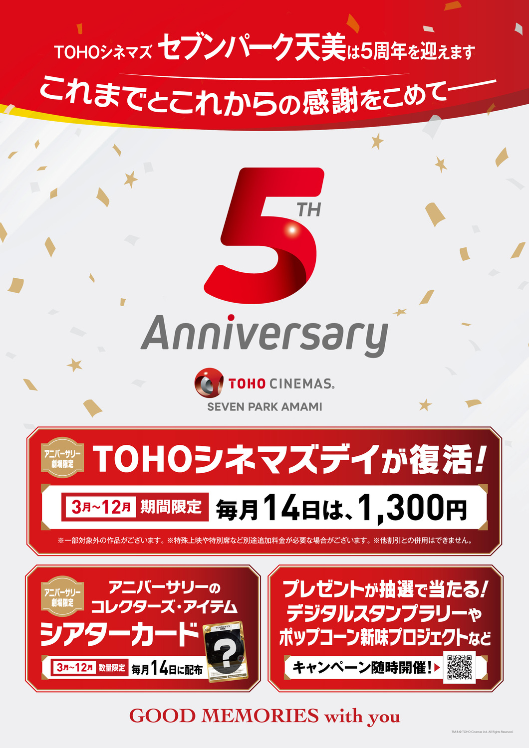 今年、TOHOシネマズセブンパーク天美は、OPENから5周年を迎えます。