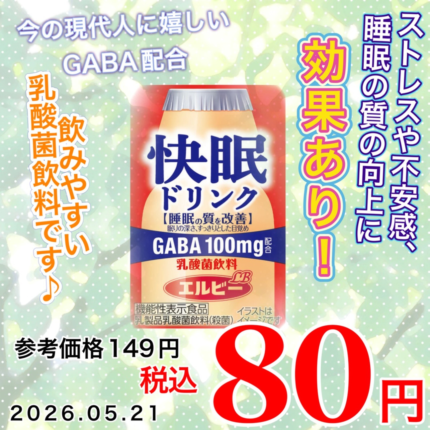 快眠ドリンク 乳酸菌飲料…(税込)80円